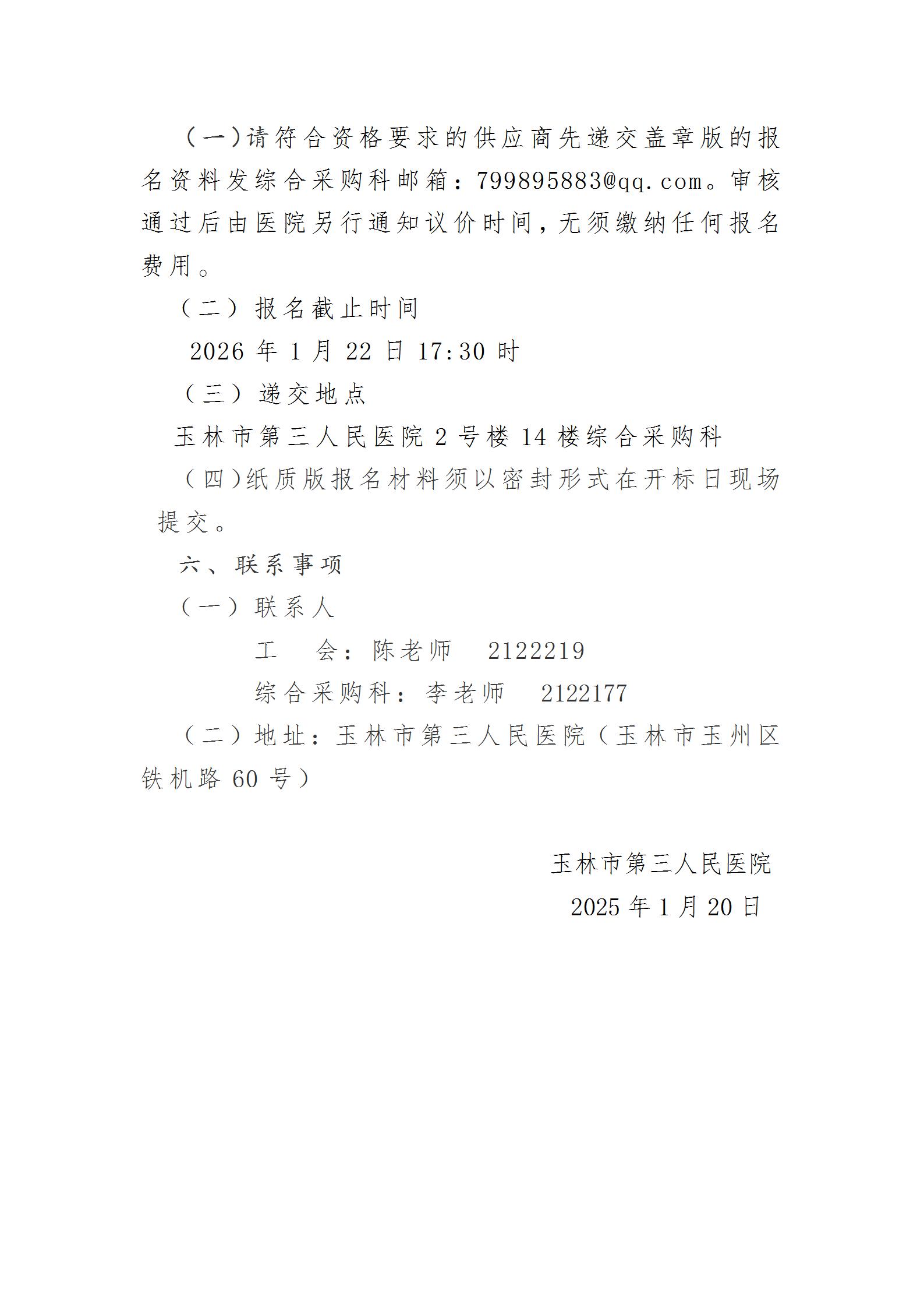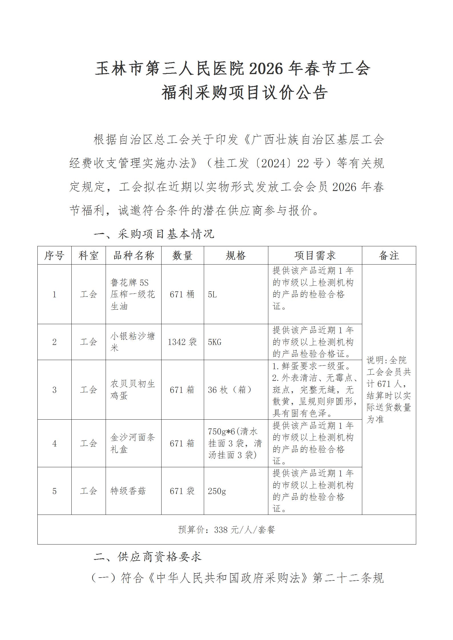 玉林市第三人民医院2026年春节工会福利采购项目议价公告