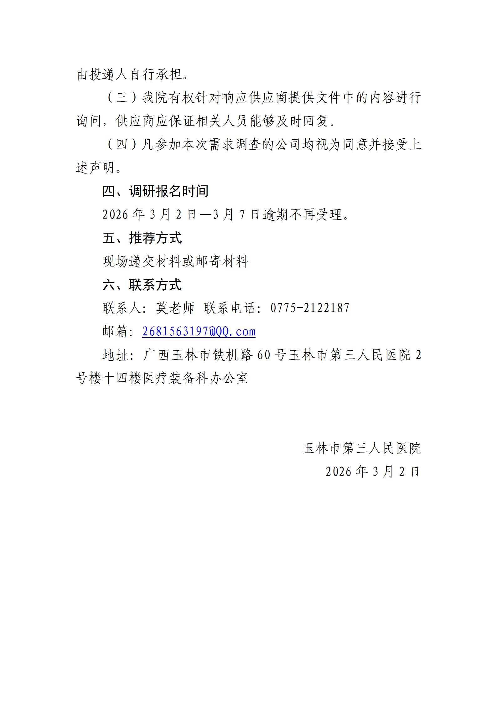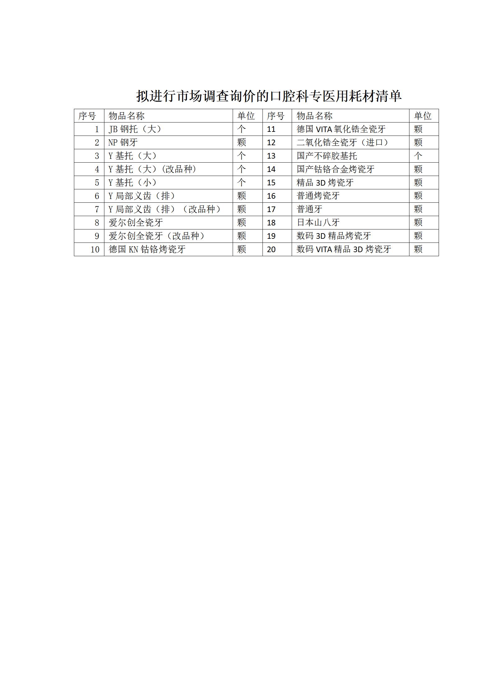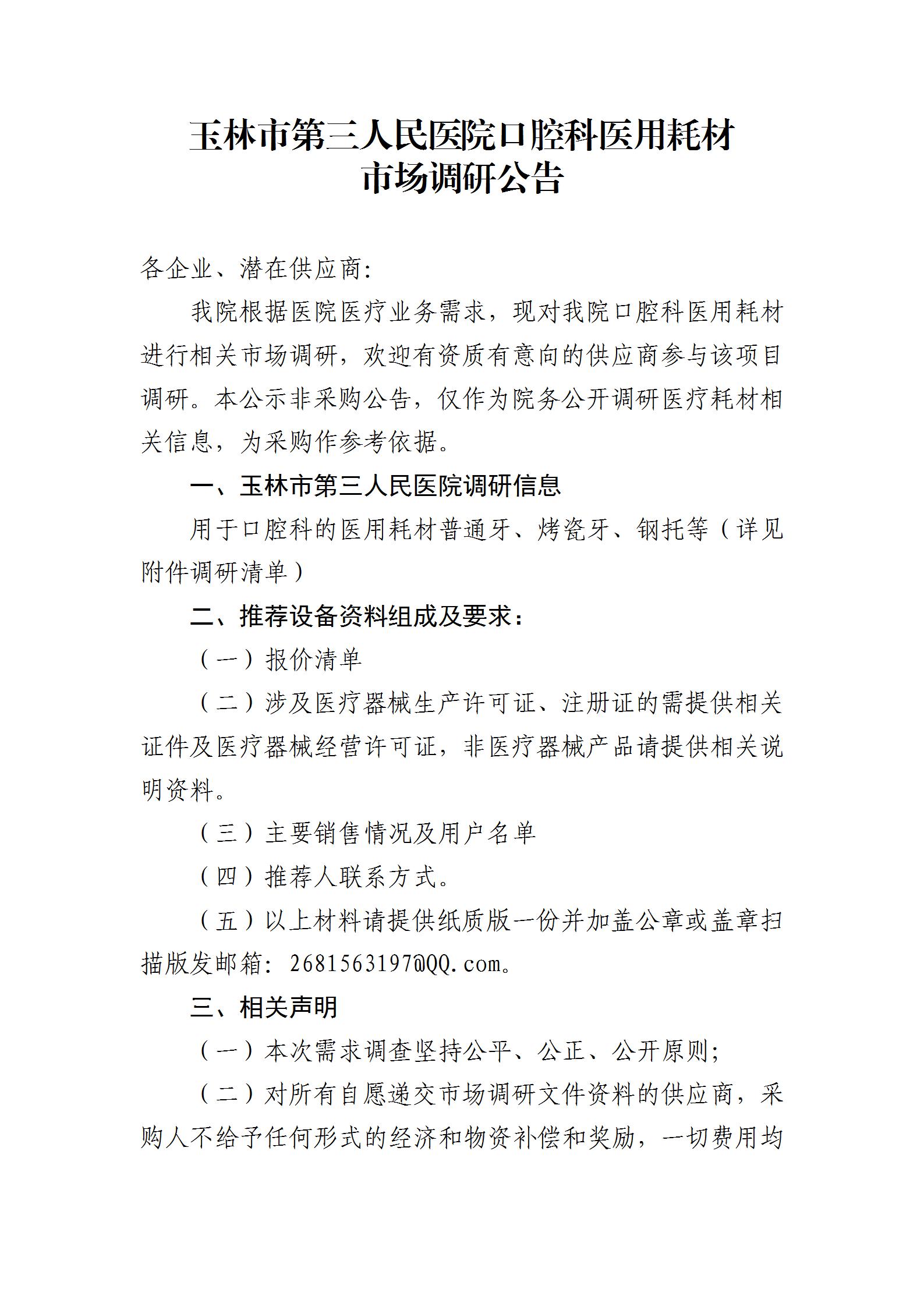 玉林市第三人民医院口腔科医用耗材市场调研公告