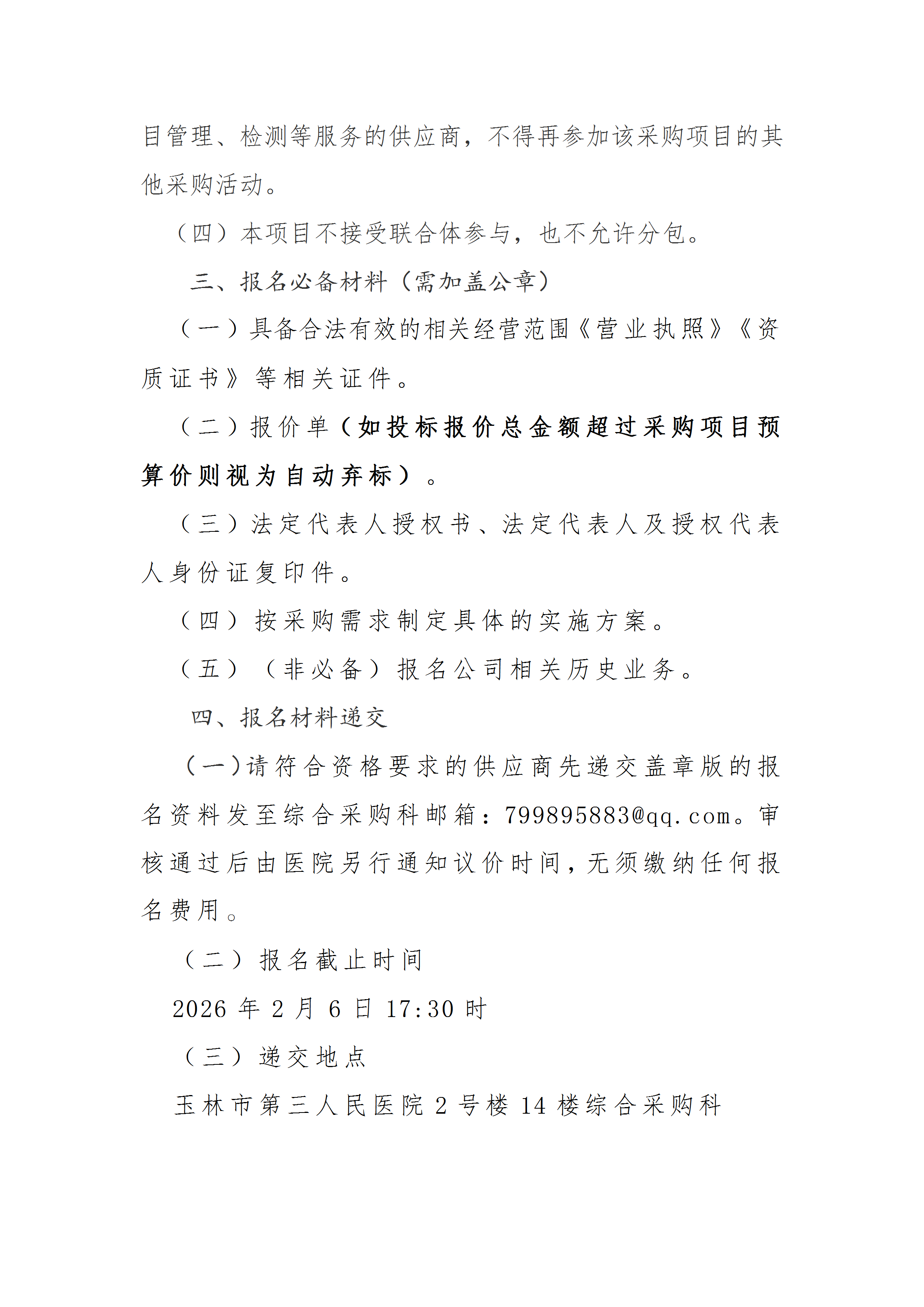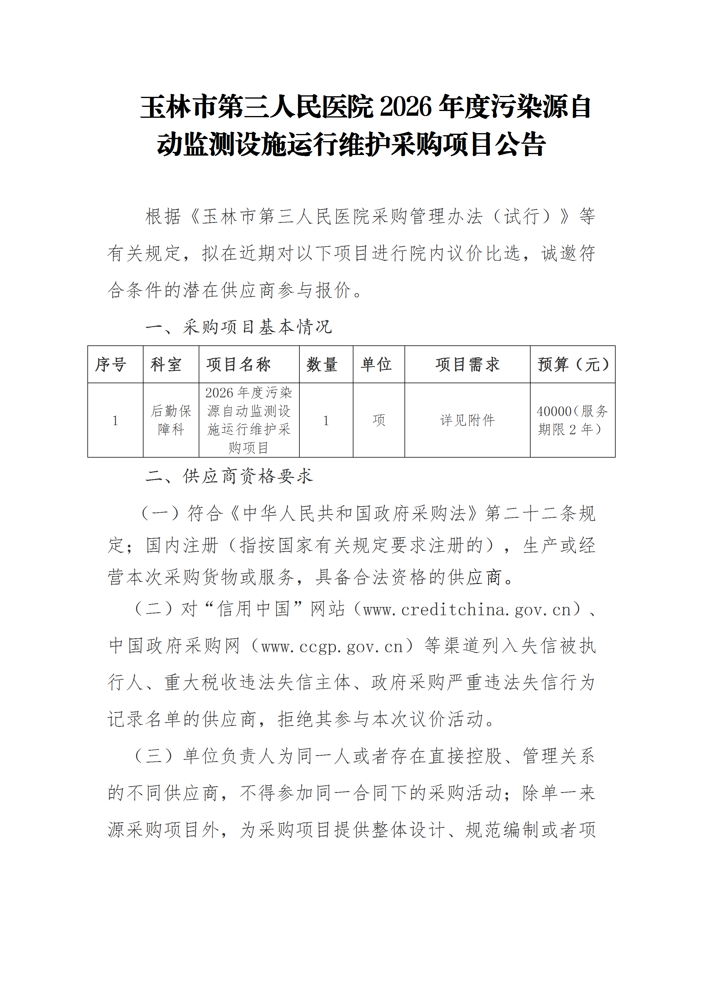 玉林市第三人民医院2026年度污染源自动监测设施运行维护采购项目公告