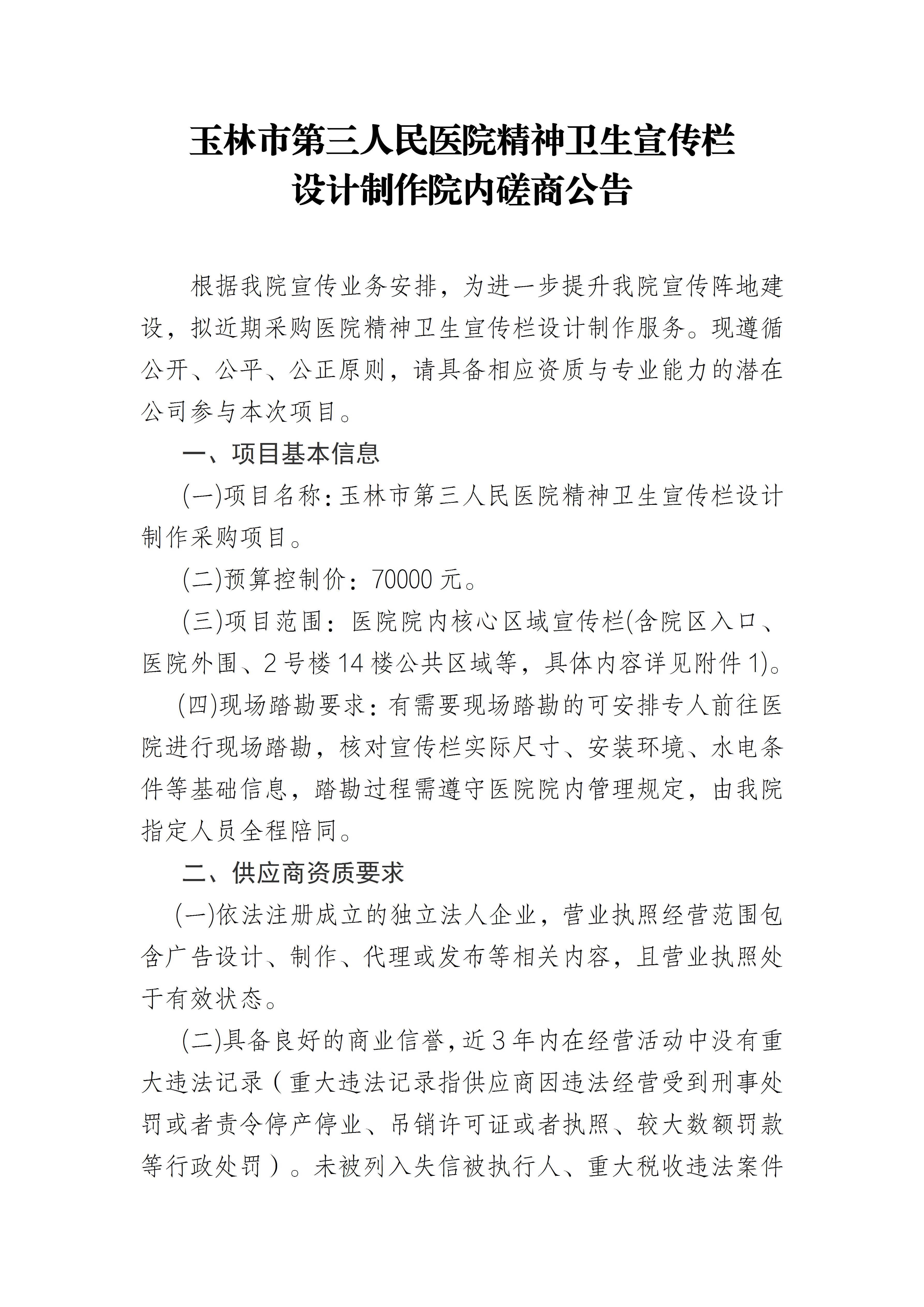 玉林市第三人民医院精神卫生宣传栏设计制作院内磋商公告