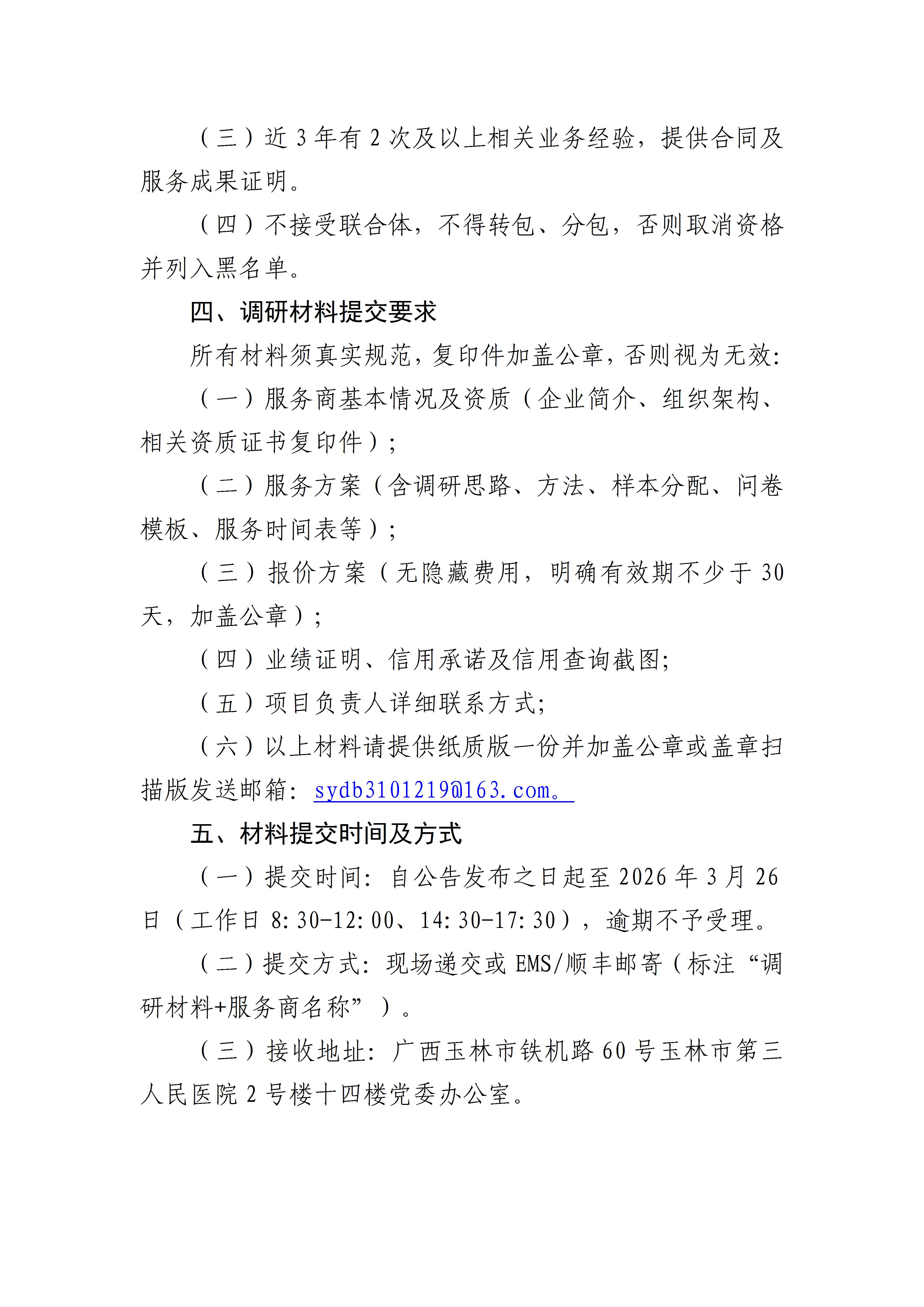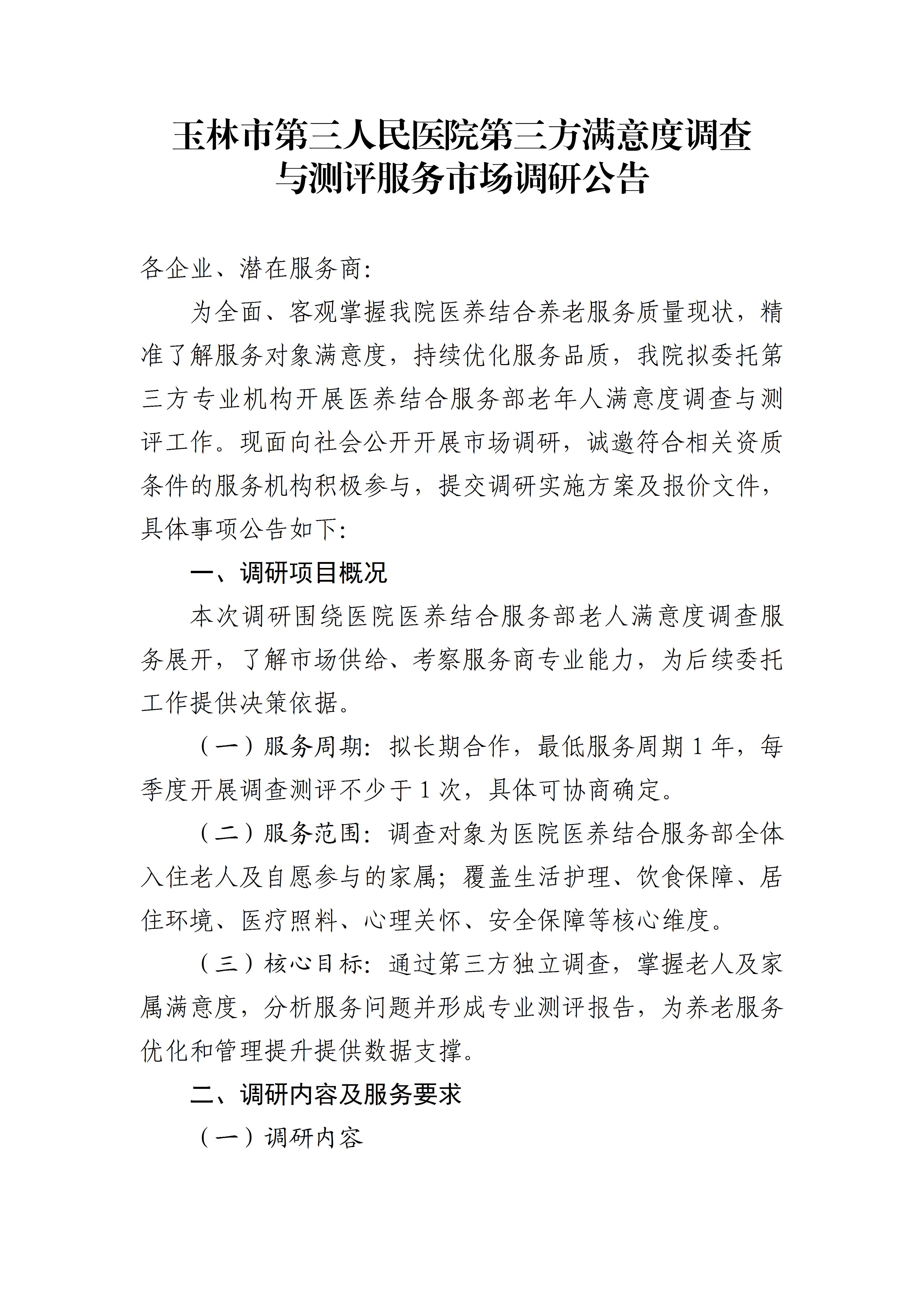 玉林市第三人民医院第三方满意度调查与测评服务市场调研公告